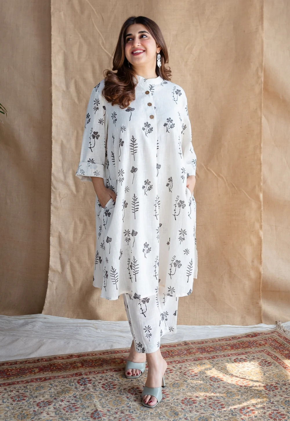 Ayaat Dabu Slub Cotton Co-ord Set (Set of 2)