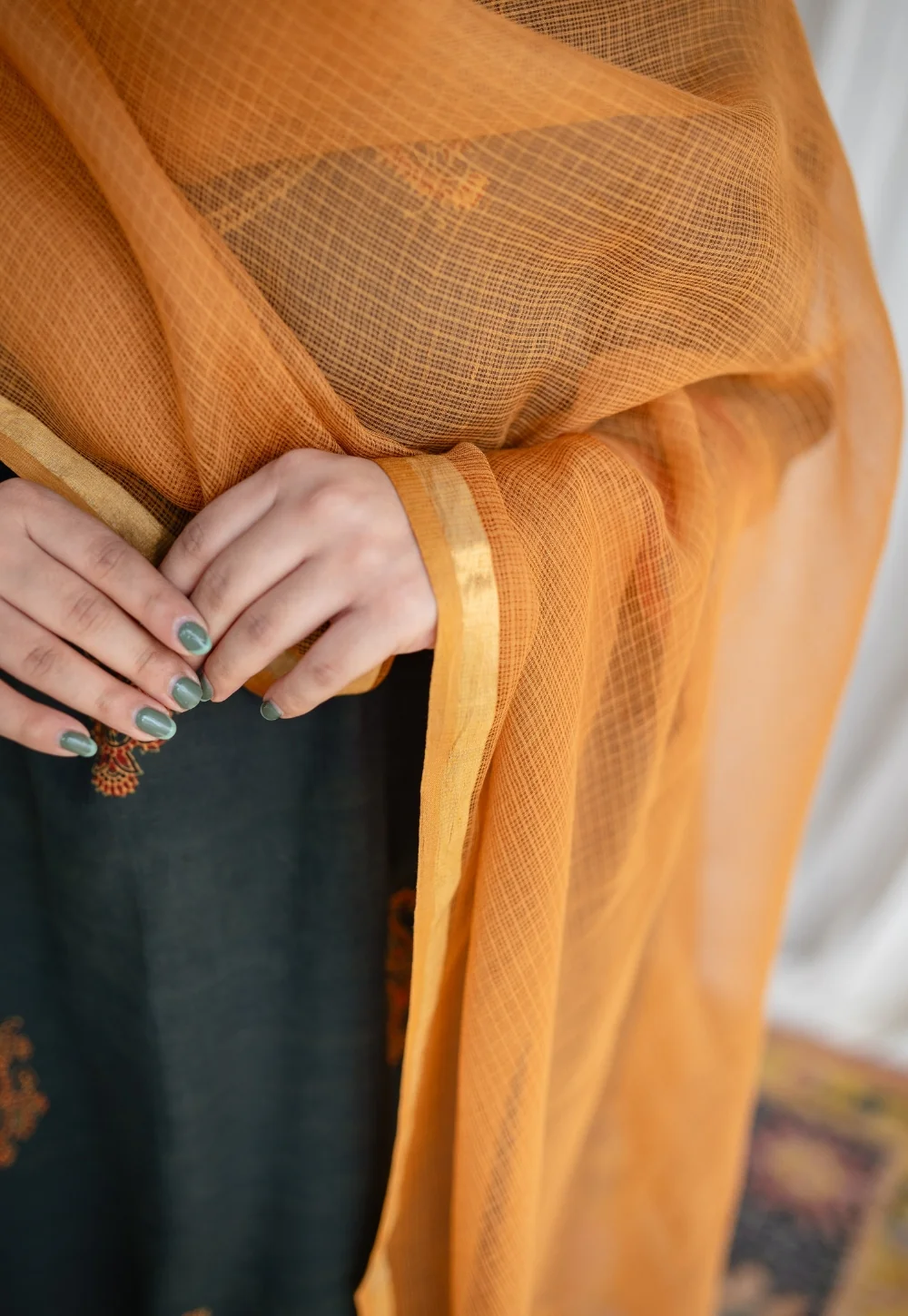 Mustrad Kota Doria Cotton Dupatta with Gold Zari Border