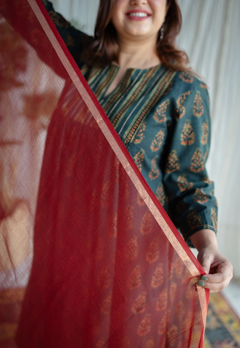 -70%Red Kota Doria Cotton Dupatta—