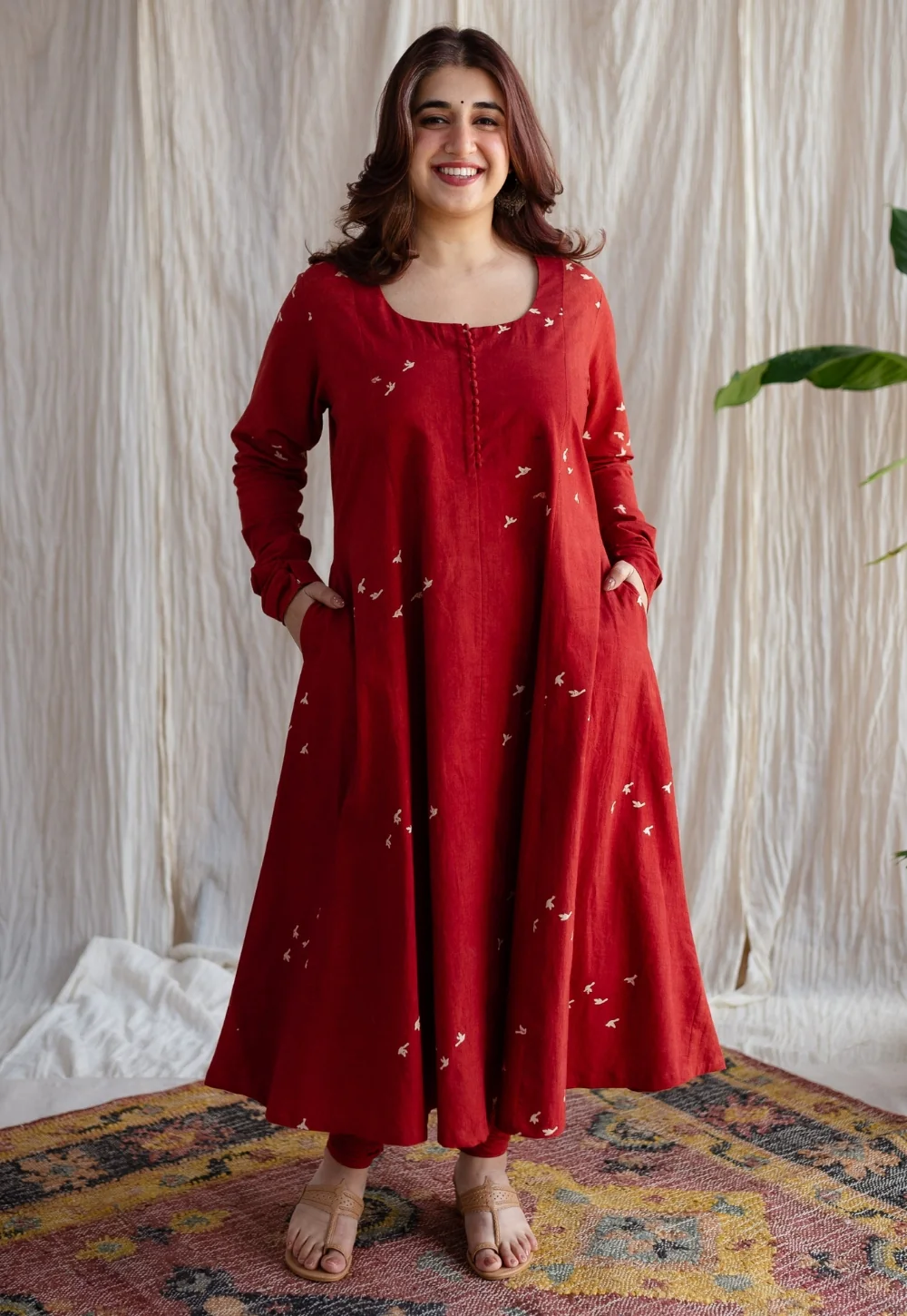 Jaipur Ajrakh Cotton Red Kali Kurta